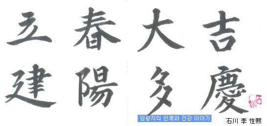 입춘대길 건양다경 : 입춘대길/건양다경. 세울건의 점도 구성궁예천명, 장맹룡비에 나옵니다. 입춘대길,건양다경 국태민안,가급인족 우순풍조,시화연풍 소지황금출,개문만복래 하시길 기원합니다. 그래서 옛어른들은 이날 '입춘대길'(立春大吉:입춘을 맞이하여 좋은 일이 많이 생기라는 뜻)과 같은 좋은 글을 써서 대문 기둥이나 대들보 혹은 천장에 붙였으며, 농가에서는 보리 뿌리를 뽑아 보고 그해. 길할길에 선비사가 아닌 흙토를 써도 무방합니다. [우혜진·석가윤 / 부산 좌천동 :